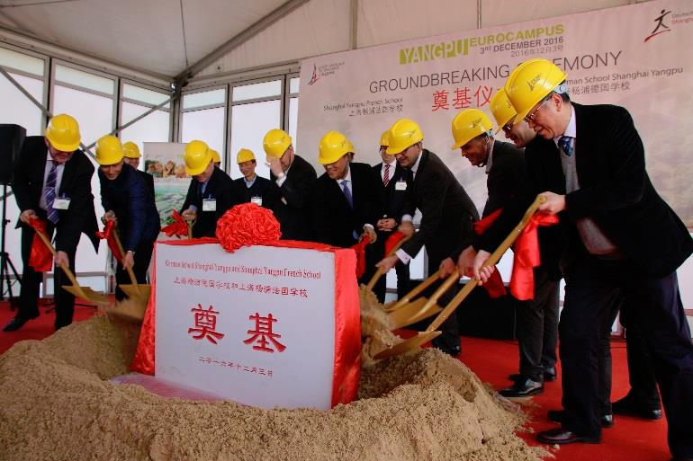 The Groundbreaking ceremony of this second Euro campus took place on Saturday the 3rd of December in 2016 in Yangpu District, Shanghai. This Campus is planned to open in September 2018. The German, French, and Chinese authorities, Presidents of the LFS’s Management Committee and the German School Shanghai’s board, Headmasters of LFS and German School and representatives of parents and staff.