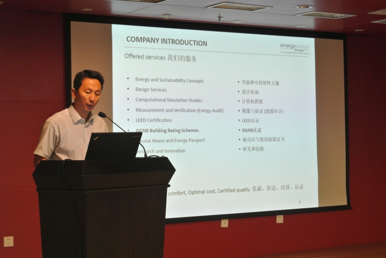 energydesign (EDS) was invited by the organizers to give a presentation about the realized best-practice projects and achievements in recent years. Dr. Yanping Zhou, managing director, discussed the opportunities and remaining challenges of implementing German sustainability standards in China. EDS’ experience as a leader in DGNB audits in the Chinese market has shown that high-quality sustainable buildings can be realized in China, when local regulations and characteristics are being respected and the long-term approaches of German technological thinking is well-managed. Successful examples, such as the Sino-German Ecopark in Qingdao or the German Center in Taicang demonstrate the qualities that are already possible today.